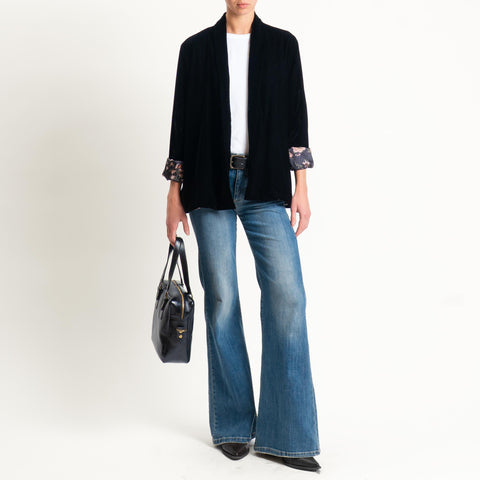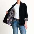 Wu'side-Kimono corto velluto fodera fantasia - nero