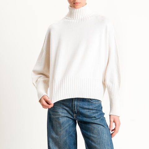 Motel-Maglia scatola collo alto bordi a coste - crema