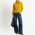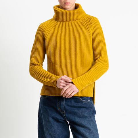 Motel-Maglia collo alto costa inglese spacchi laterali - zafferano