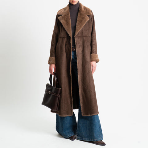 Abrigo largo con cinturón Motel-Ecomontone - marrón oscuro