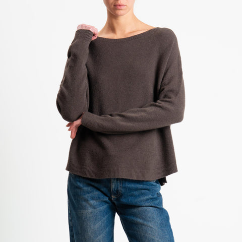 Suéter de cuello redondo acanalado Haveone - Cacao