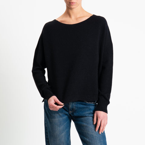 Suéter de cuello redondo acanalado Haveone - Negro