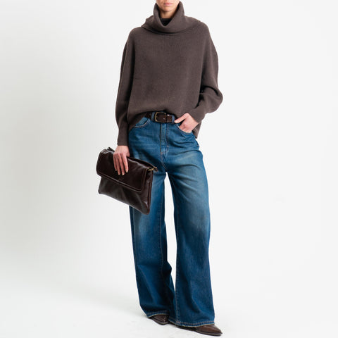 Suéter de cuello vuelto acanalado Haveone - Marrón oscuro