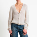 Vicolo-Cardigan mohair micro paillettes bottoni gioiello - panna