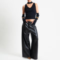 Haveone-Maglia collo montato scollo v con manicotti - nero