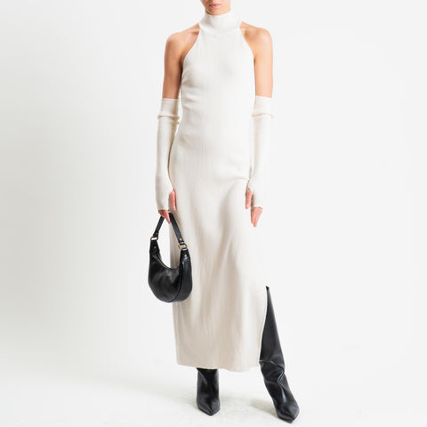 Haveone-Abito a costine con pizzo + manicotti - panna