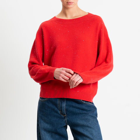 Haveone-Maglia girocollo con micro paillettes - rosso