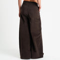 Philia Loft-Pantalone palazzo velluto diagonale elasticizzato sfrangiato - moro