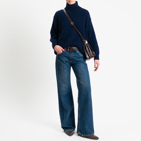 Dixie-Maglia mohair collo montato bordi a coste - blu
