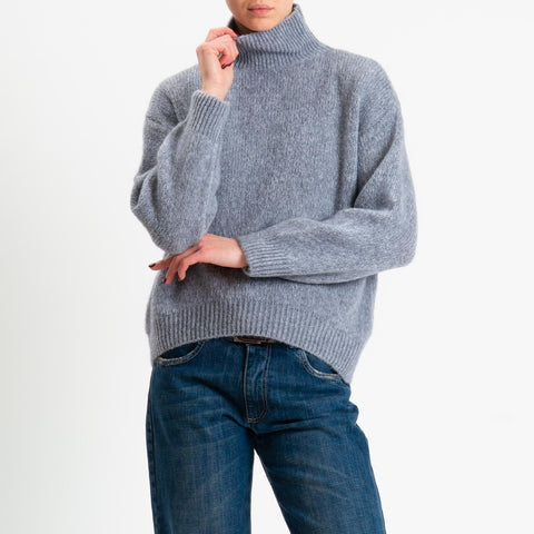 Dixie-Maglia mohair collo montato bordi a coste - grigio