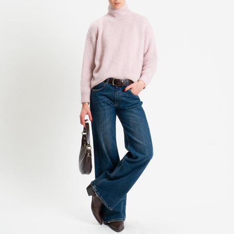 Dixie-Maglia mohair collo montato bordi a coste - rosa chiaro