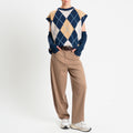Tensione in-Maglia smanicata rombi argyle con mani - blu/camel/casha