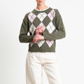 Tensione in-Maglia argyle girocollo misto cashmere - verde/off white/rosa