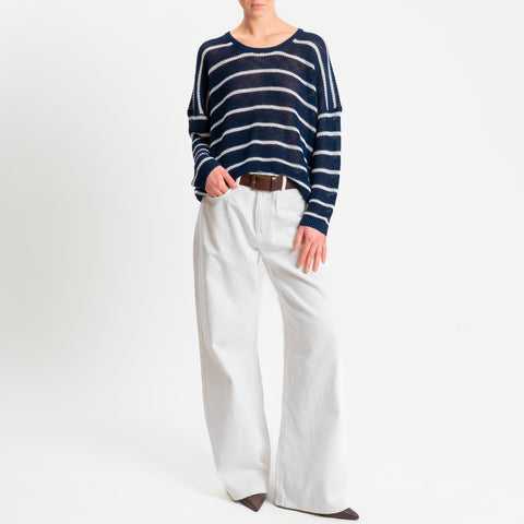 Tensione in-Maglia a righe girocollo coste inglesi - blu/panna