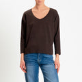 Zeroassoluto-T-shirt scatola scollo v elasticizzato - moro