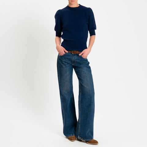 Zeroassoluto-Maglia manica sbuffo bordi a coste - blu