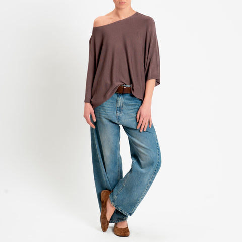 Zeroassoluto-Maglia a scatola scollo barca manica pipistrello - moka