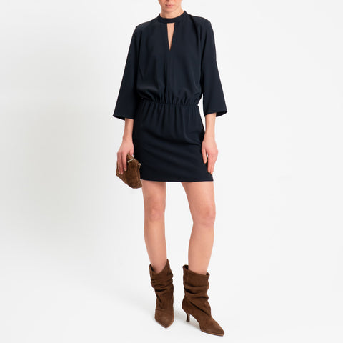 Souvenir-Abito tessuto fluido elastico in vita - nero