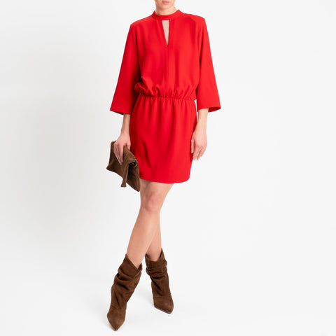 Souvenir-Abito tessuto fluido elastico in vita - rosso