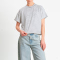 Zeroassoluto-T-shirt girocollo a righe in jersey elasticizzato - panna/nero