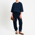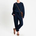 Pantalone in felpa dal fit morbido, realizzato in cotone soffice garzato all’interno, confortevole a contatto con la pelle. Modello con elastico e coulisse in vita per una regolazione personalizzata, tasche posteriori ed elastico sul fondo per un effetto più avvolgente. Trattata con la tecnica dello stone wash che garantisce un aspetto di pregio, comfort elevato e maggior morbidezza.