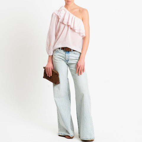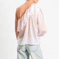 Zeroassoluto-Blusa monospalla con balze mussola di tencel/cotone - light pink