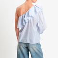 Zeroassoluto-Blusa monospalla con balze mussola di tencel/cotone - sky