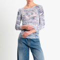 Tensione in-Blusa tulle elasticizzato fantasia - jeans/latte