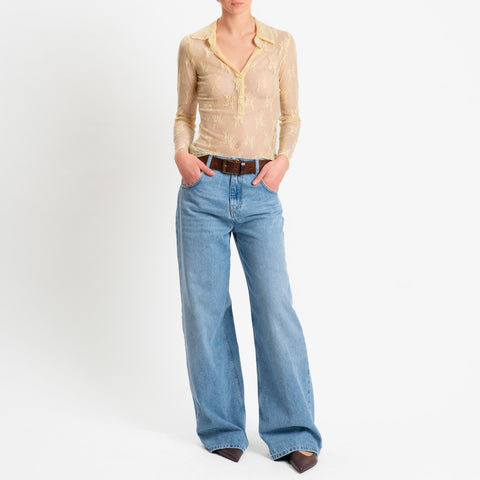 Haveone-Camicia chester in tulle ricamato - giallo