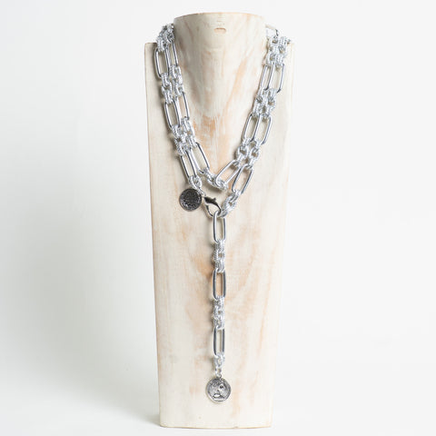 W by Whitemood- Collana catene miste con moneta - silver