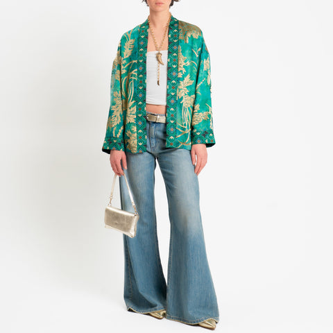 Wu'side-Kimono corto organza fantasia floreale - smeraldo/sand/nero