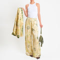 Wu'side-Pantalone organza fantasia floreale - crema/mimosa/salvia