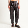 Dixie-Pantalone similpelle barrel fit con pinces - moro