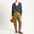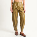 Dixie-Pantalone similpelle barrel fit con pinces - olio