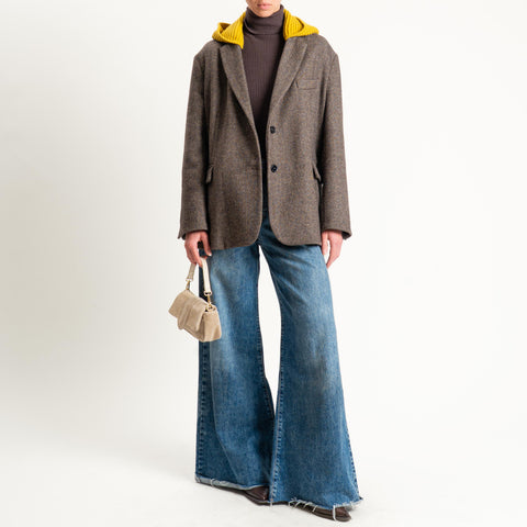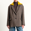 Vicolo-Giacca spinata misto lana con cappuccio - moro/senape
