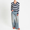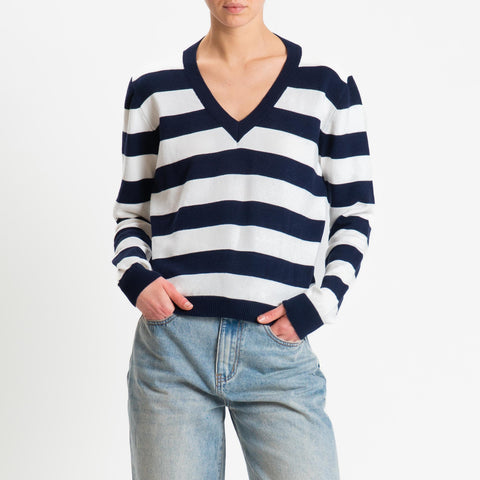Tensione in-Maglia scollo v a righe - Blu/bianco