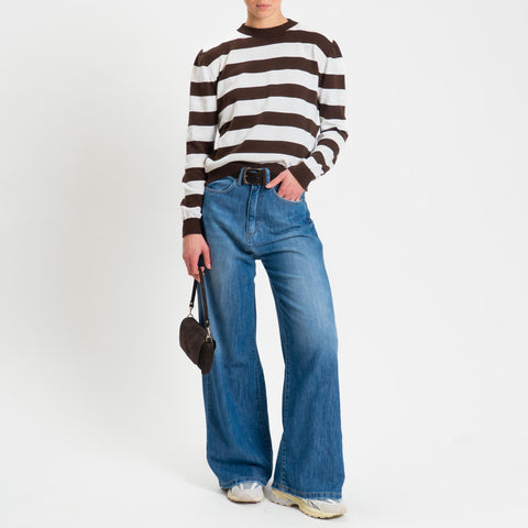 Tensione in-Maglia girocollo a righe - moro/bianco