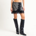 Motel-Minigonna portafoglio pied de poule con pizzo - grigio/nero