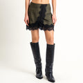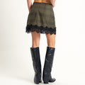 Motel-Minigonna portafoglio pied de poule con pizzo - militare/nero