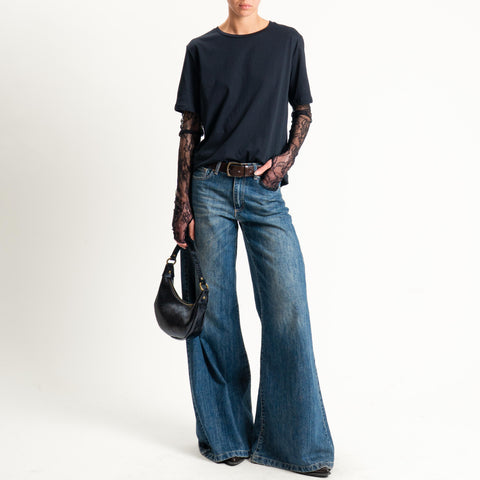 Tensione in-T-shirt over con manicotti in pizzo - nero