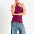 Zeroassoluto- Top a costine scollo incrociato cotone elasticizzato - berry