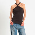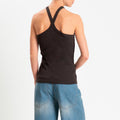 Zeroassoluto- Top a costine scollo incrociato cotone elasticizzato - moro