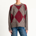 Tensione in-Maglia rombi a scatola misto lana - brown/vino