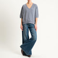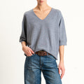 Kontatto-Maglia scollo v con micro paillettes - grigio melange