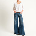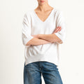 Kontatto-Maglia scollo v con micro paillettes - panna