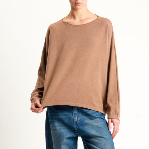 Zeroassoluto-Maglia girocollo a scatola - camel