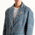 Dixie-Giacca check oversize in velour con spille - blu/azzurro/peach