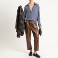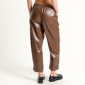 Dixie-Pantalone similpelle elastico dietro con pinces e risvolto- bruciato