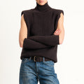 Kontatto-Gilet misto lana con spalline e manicotti - moro