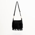 W by Whitemood-Borsa secchiello scamosciata con frange - Nero